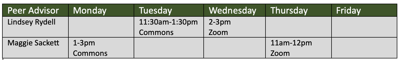 *Email an advisor to set up an alternative appointment if none of these times work