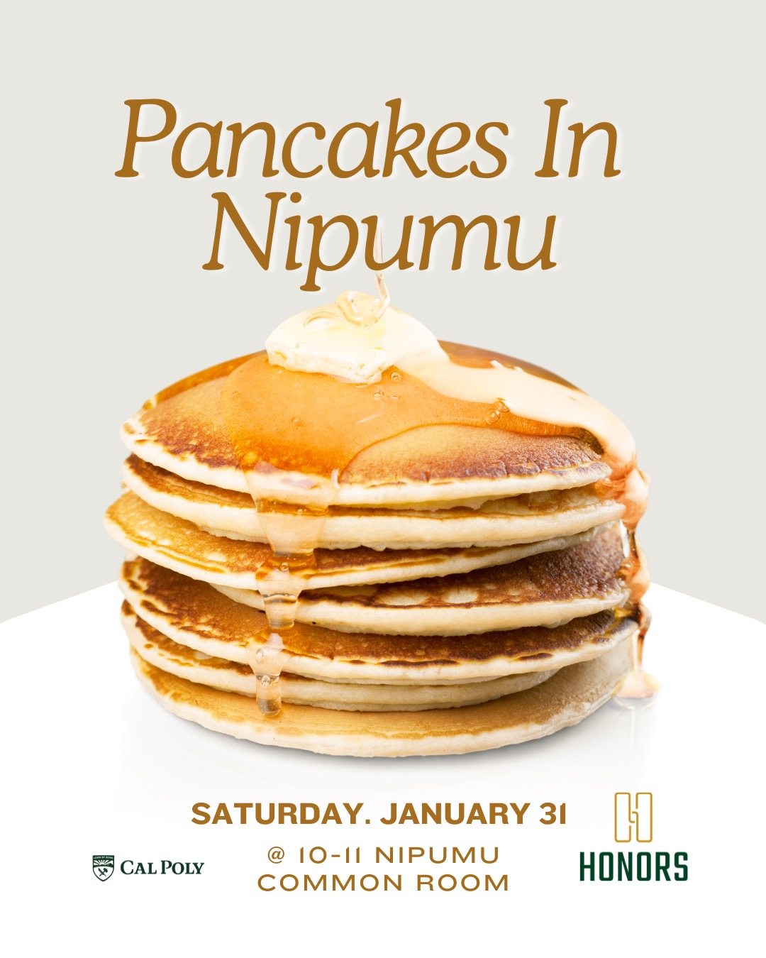 This week's Honors Event is for you! We will be hosting a pancake breakfast in nipumuʔ this Saturday, January 31! Peer Advisors will be there to do First Year Check-Ins. Remember if you want to do your check-in be sure to fill out the 4-Year Check List before you come.