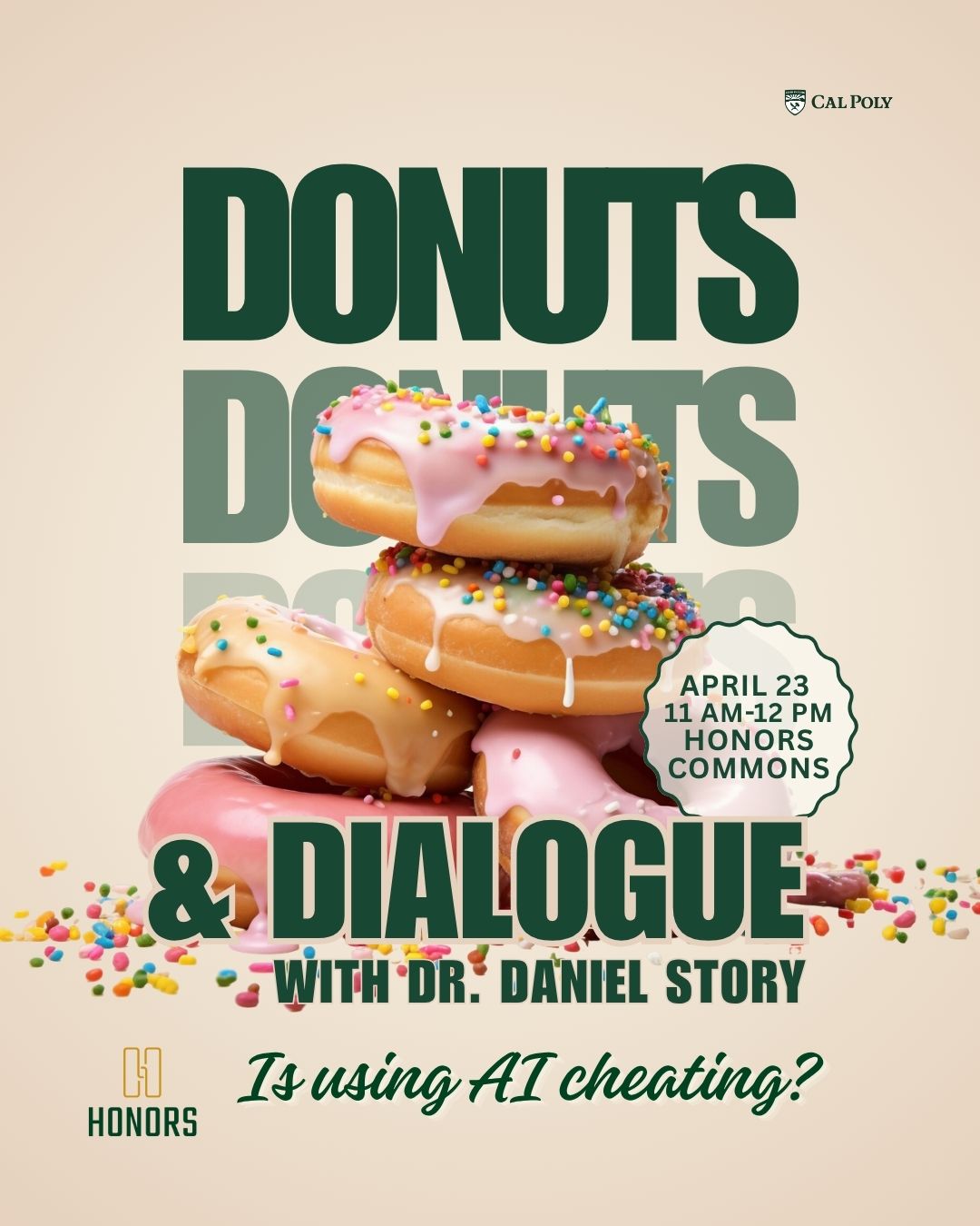 Come here Dr. Daniel Story (Philosophy Department), an expert on ethics and AI will discuss whether its cheating (or not) to use AI in college. It's a chance to listen, ask questions and, of course, eat donuts.