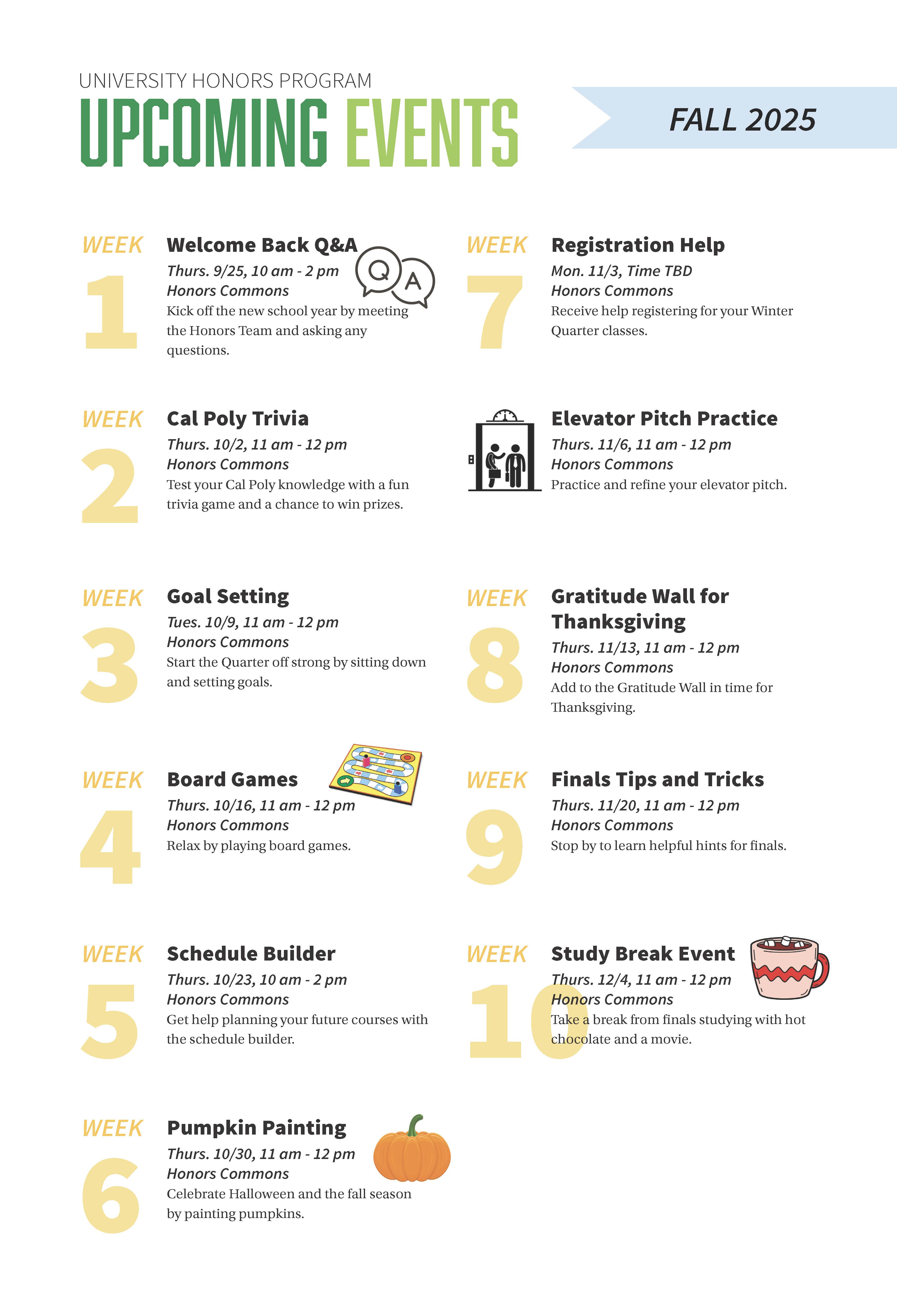 Check out all the Honors Events we have planned for this Fall 25 Quarter!